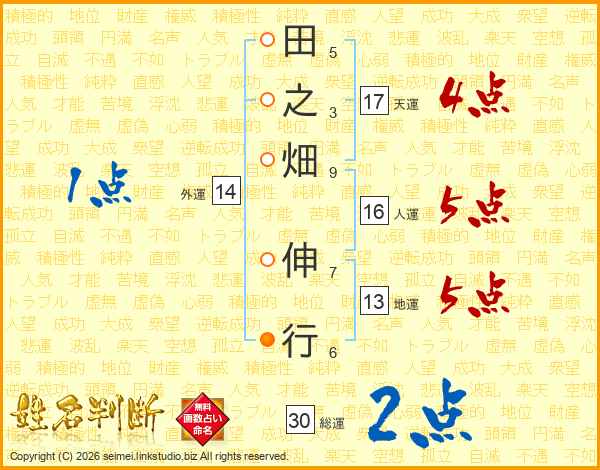 田之畑伸行さんの総運は30画の2点!