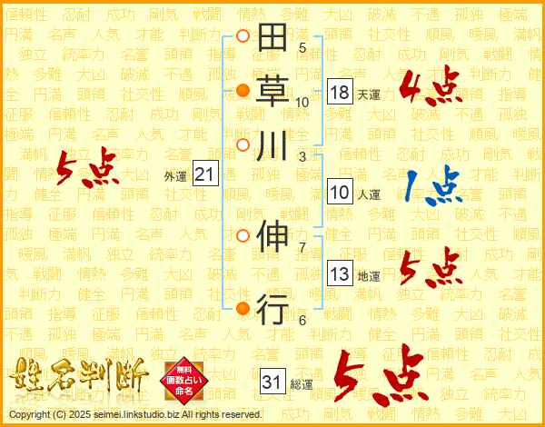田(5画)草(10画)川(3画) 伸(7画)行(6画)