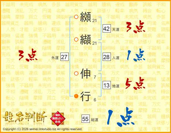 纐纈伸行さんの総運は55画の1点!