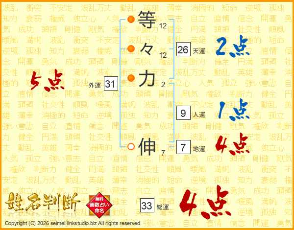 等々力伸さんの天運は26画の2点!