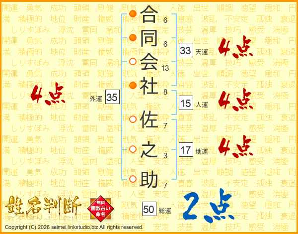 合同会社佐之助さんの天運は33画の4点!