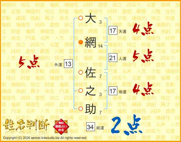 大網佐之助さんの天運は17画の4点!