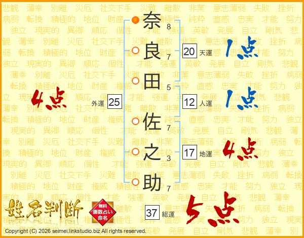 奈良田佐之助さんの総運は37画の5点!