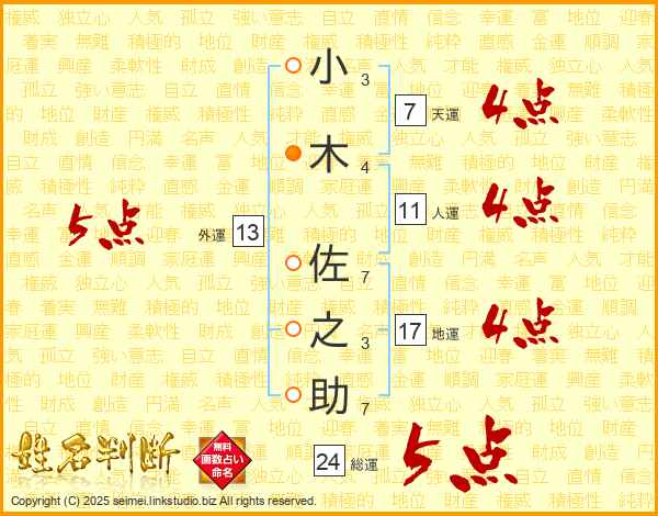 小(3画)木(4画) 佐(7画)之(3画)助(7画)