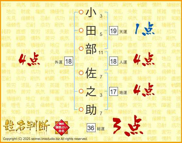 小(3画)田(5画)部(11画) 佐(7画)之(3画)助(7画)