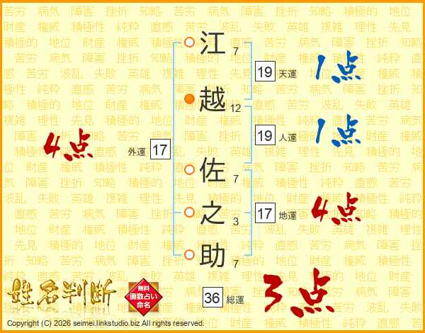 江(7画)越(12画) 佐(7画)之(3画)助(7画)