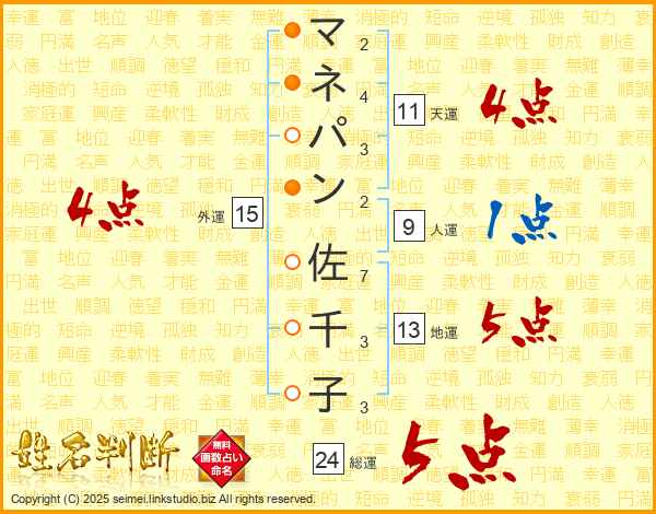 マネパン佐千子さんの総運は24画の5点!