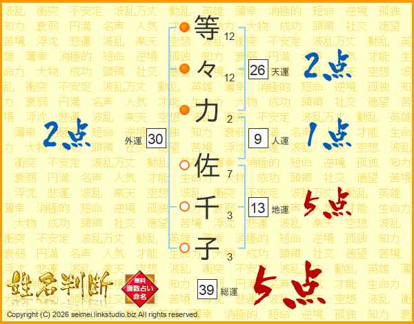 等々力佐千子さんの天運は26画の2点!