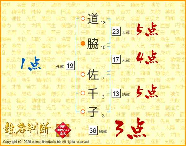道脇佐千子さんの天運は23画の5点!