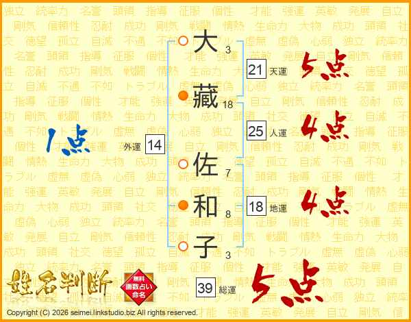 大(3画)藏(18画) 佐(7画)和(8画)子(3画)