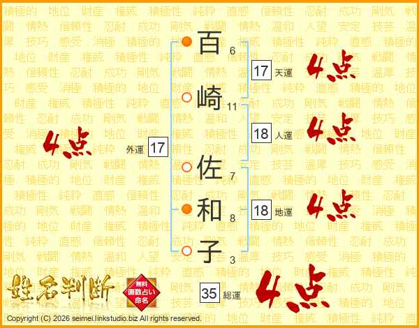 百(6画)崎(11画) 佐(7画)和(8画)子(3画)