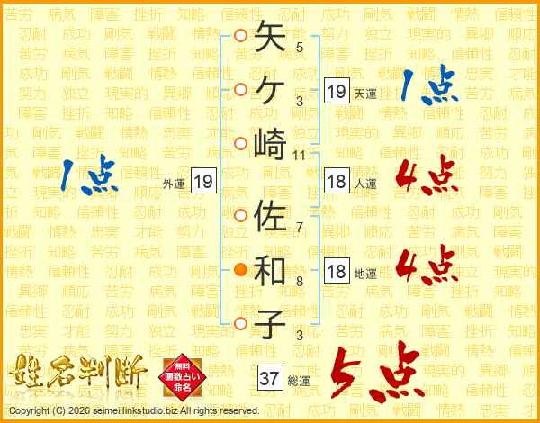 矢ケ崎佐和子さんの総運は37画の5点!