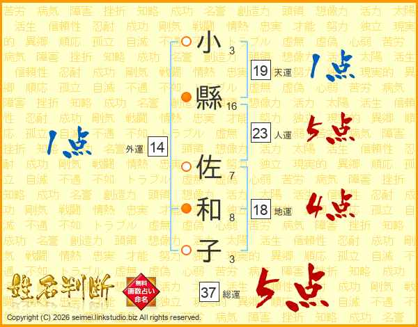 小縣佐和子さんの総運は37画の5点!