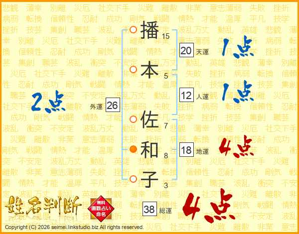 播本佐和子さんの総運は38画の4点!