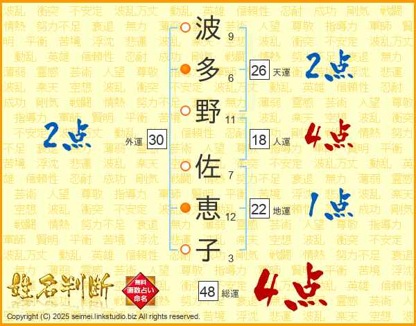波多野佐恵子さんの総運は48画の4点!