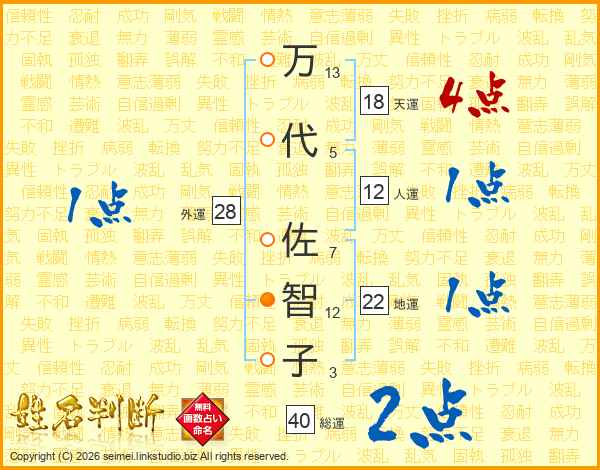 万代佐智子さんの総運は40画の2点!