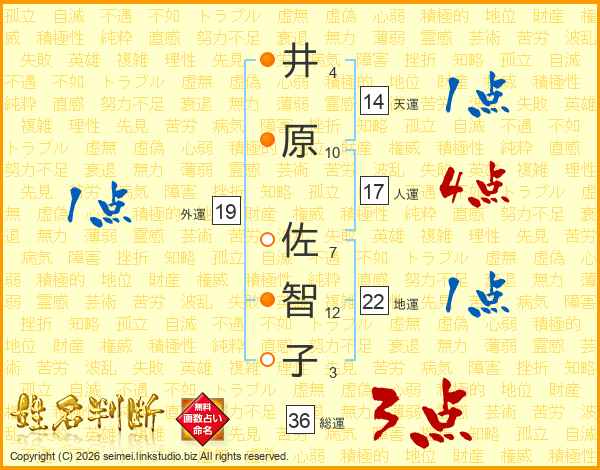 井(4画)原(10画) 佐(7画)智(12画)子(3画)