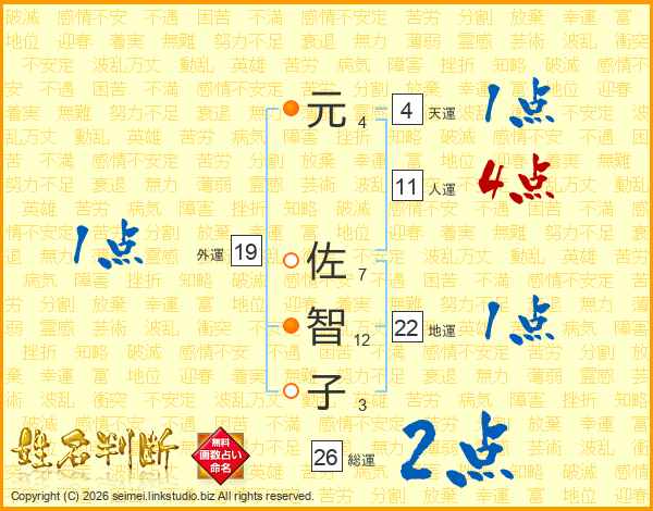 元佐智子さんの総運は26画の2点!