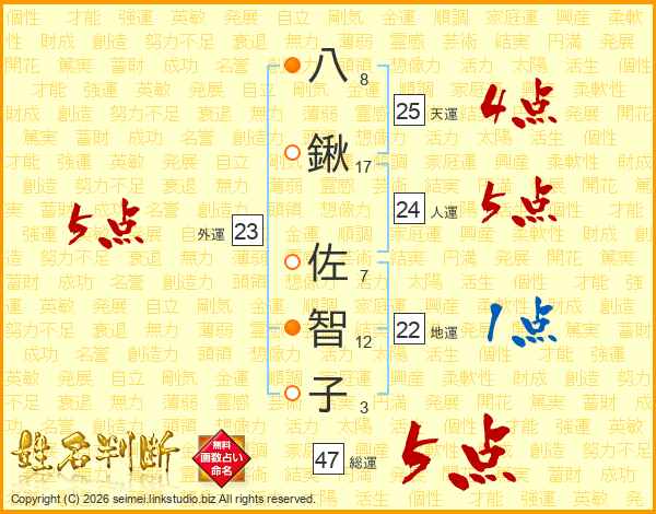 八鍬佐智子さんの総運は47画の5点!