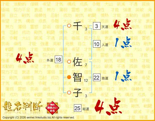 千佐智子さんの総運は25画の4点!