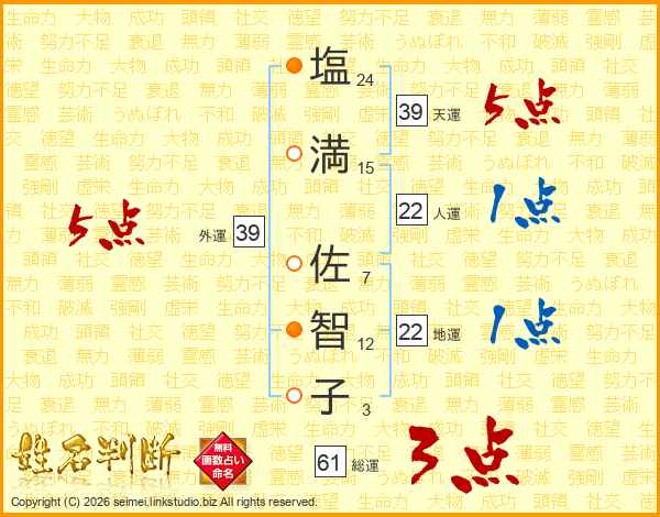 塩満佐智子さんの外運は39画の5点!
