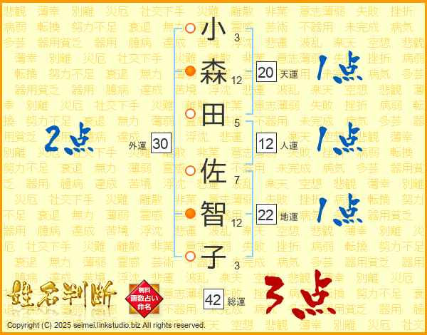 小森田佐智子さんの総運は42画の3点!