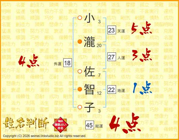 小(3画)瀧(20画) 佐(7画)智(12画)子(3画)