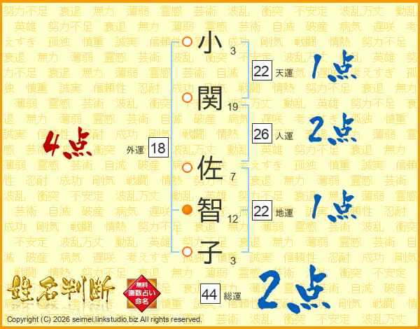 小関佐智子さんの総運は44画の2点!