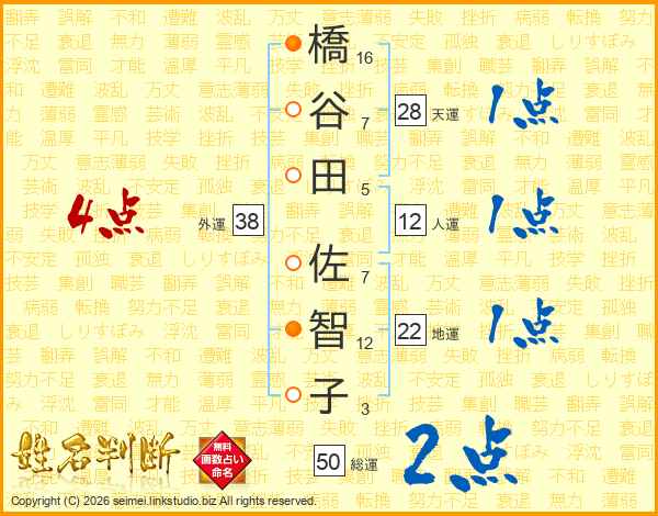 橋谷田佐智子さんの地運は22画の1点!