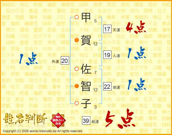 甲(5画)賀(12画) 佐(7画)智(12画)子(3画)