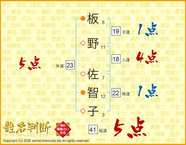 板野佐智子さんの総運は41画の5点!