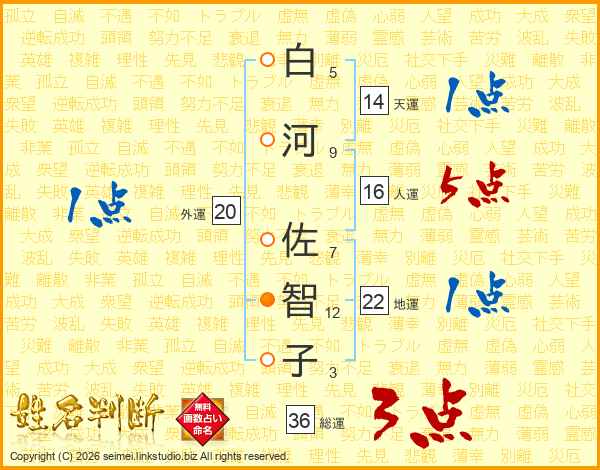 白(5画)河(9画) 佐(7画)智(12画)子(3画)