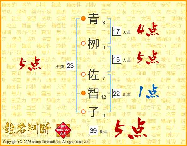 青栁佐智子さんの総運は39画の5点!