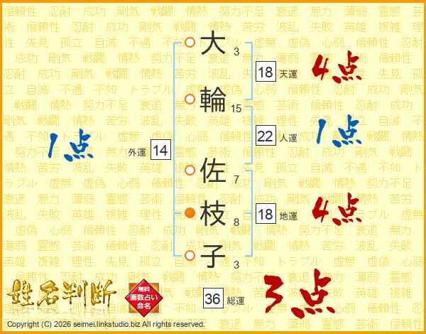 大(3画)輪(15画) 佐(7画)枝(8画)子(3画)