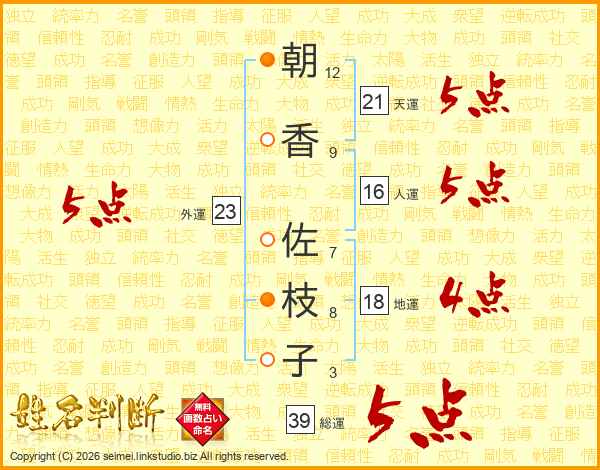 朝香佐枝子さんの総運は39画の5点!