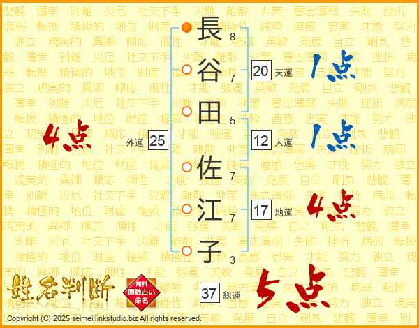 長谷田佐江子さんの総運は37画の5点!