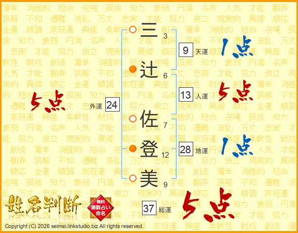 三辻佐登美さんの総運は37画の5点!
