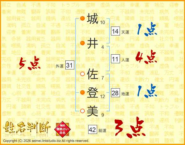 城井佐登美さんの外運は31画の5点!