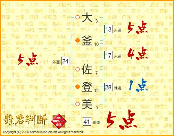 大釜佐登美さんの総運は41画の5点!