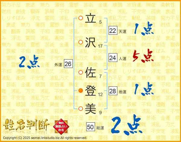 立(5画)沢(17画) 佐(7画)登(12画)美(9画)