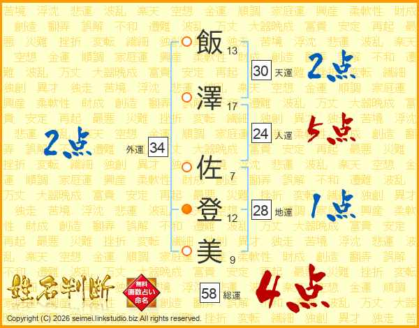 飯澤佐登美さんの総運は58画の4点!