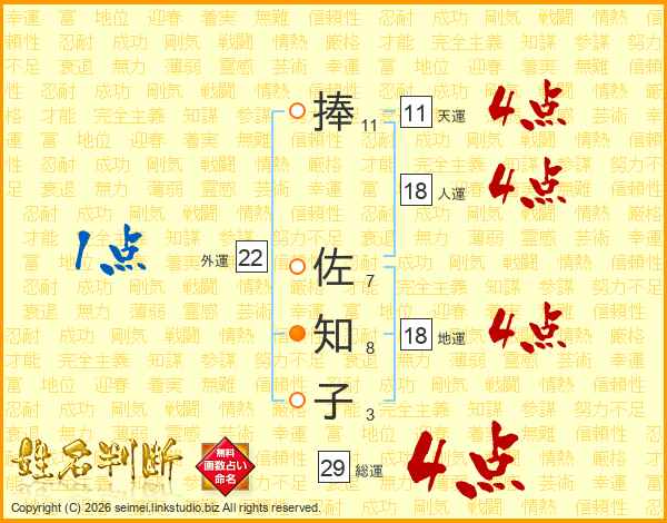 捧佐知子さんの人運は18画の4点!