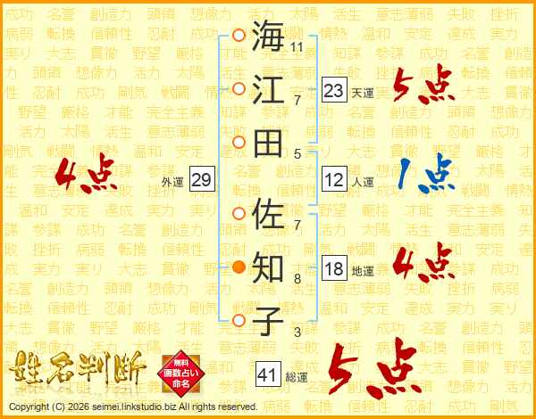 海江田佐知子さんの外運は29画の4点!