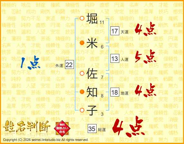 堀米佐知子さんの総運は35画の4点!