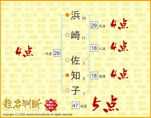 浜(18画)崎(11画) 佐(7画)知(8画)子(3画)