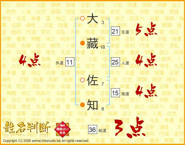大(3画)藏(18画) 佐(7画)知(8画)