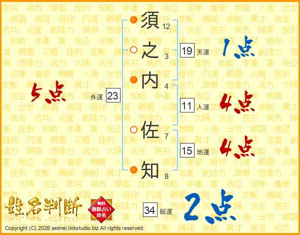 須(12画)之(3画)内(4画) 佐(7画)知(8画)