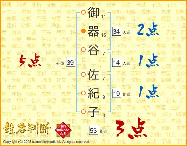 御器谷佐紀子さんの総運は53画の3点!