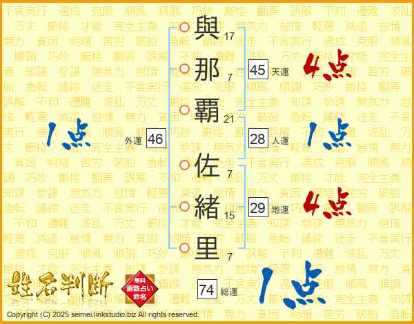 與那覇佐緒里さんの天運は45画の4点!