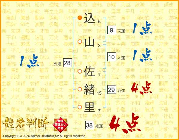 込山佐緒里さんの総運は38画の4点!